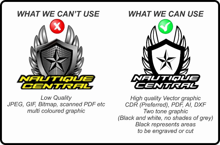 Below is a guide on what the best options are for us undertake your engraving work with customer supplied artwork. This is a guide only and under certain circumstances, your art work may still not be suitable.
