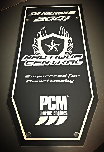 Customer logo above engraved on black anodized aluminum, 3mm thick,